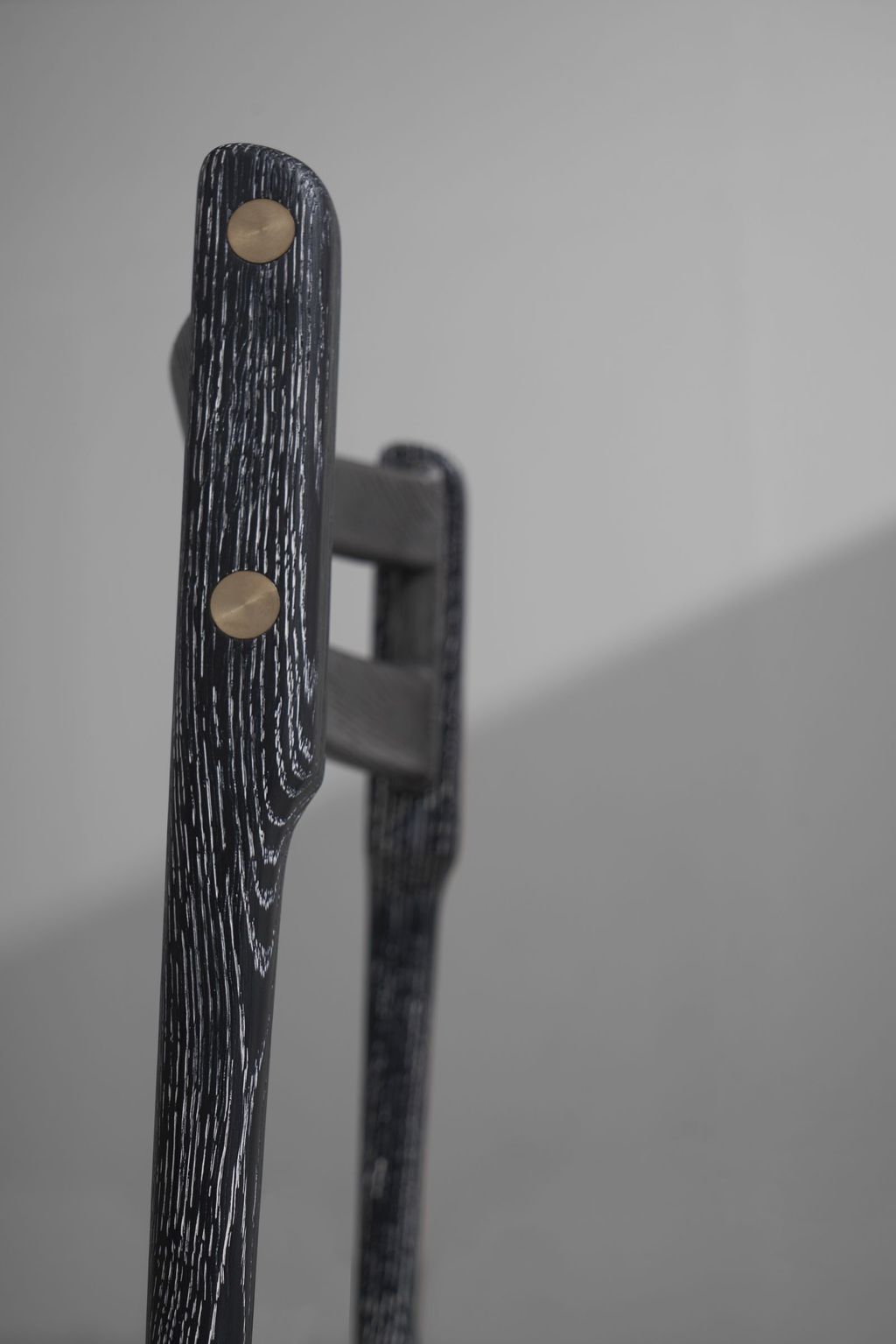 CERUSED OAK/CAST ALUMINUM BACK REST/INK BLACK LEATHER SEAT